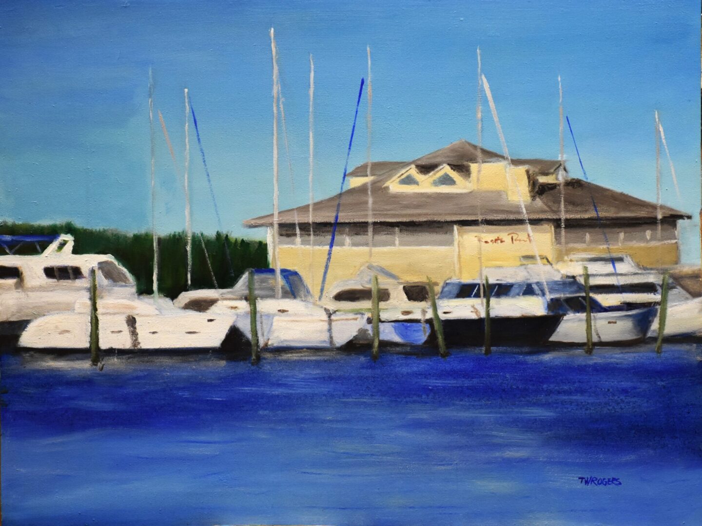A busy marina and restaurant on the Manatee River in Palmetto, Florida.